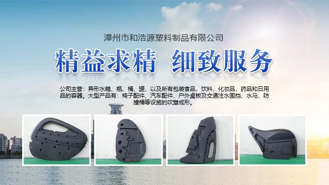 漳州市和浩源塑料制品有限公司是漳州塑料制品行業(yè)的知名企業(yè),本公司擁有專業(yè)的團(tuán)隊(duì),從產(chǎn)品設(shè)計(jì)、模具開發(fā)到生產(chǎn),并具有先進(jìn)的生產(chǎn)設(shè)備,精湛的生產(chǎn)工藝,嚴(yán)格的管理,具備根據(jù)用戶需要進(jìn)行設(shè)計(jì)、制造生產(chǎn)用戶所需產(chǎn)品的能力。 公司主營(yíng):異形水箱、瓶、桶、罐、以及所有包裝食品,飲料,化妝品,藥品和日用品的容器。大型產(chǎn)品有:椅子配件、汽車配件、戶外桌板及交通注水圍擋、水馬、防撞桶等設(shè)施的吹塑成形。 “誠(chéng)實(shí)守信,互惠共贏”,是我們的經(jīng)營(yíng)理念;“精益求精,細(xì)致服務(wù)”,是我們的工作準(zhǔn)則,“堅(jiān)持行業(yè)標(biāo)準(zhǔn),創(chuàng)造時(shí)代精品,追求優(yōu)良的品質(zhì)”,是我們的質(zhì)量標(biāo)準(zhǔn)和目標(biāo);“以人為本,科技創(chuàng)新,簡(jiǎn)捷嚴(yán)明,管理規(guī)范”是我們管理機(jī)制的核心內(nèi)容;“生產(chǎn)優(yōu)良產(chǎn)品,提供細(xì)致的服務(wù)”,是我們的承諾。